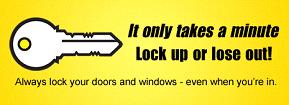 Please remember to keep doors and windows locked when in the garden having BBQs, gardening, hanging out the washing, etc.